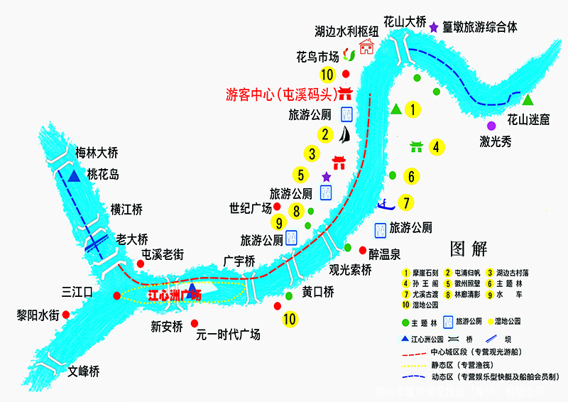 5路:西鎮(zhèn)街 - 昱西新村 - 黃山昌仁醫(yī)院 -西海北路 橫江橋南端 - 橫江橋 - 華山西路- 華山路 - 一馬路 - 二馬路 - 商貿(mào)城 - 昱中花園 - 老六中 - 躍進(jìn)路口 - 六小 - 徐家巷 - 新園路口 - 長干轉(zhuǎn)盤 - 公交?空-世紀(jì)廣場-新園東路口-天都雅苑-社屋前路口-老年大學(xué)-公交?空-屯浦歸帆-屯溪碼頭-花鳥市場