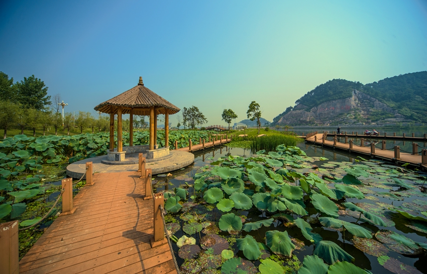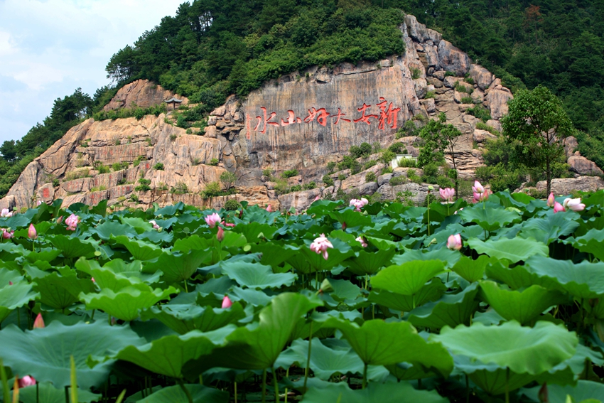 遠(yuǎn)處的山九龍山臨江而立,由于過(guò)去開(kāi)山采石,造成朝向江面的山體形成大片裸露巖壁,已成為一處地質(zhì)災(zāi)害點(diǎn)。政府就結(jié)合地質(zhì)災(zāi)害治理,因地制宜,變廢為寶,將其打造成大型塑山文化景觀工程。在其最大的一個(gè)斷面上雕刻徽州歷史名人朱熹的手書(shū)“新安大好山水”,另一斷面上雕刻“新安畫(huà)派名家題壁”,將自明清以來(lái)原籍徽州的23位新安畫(huà)派名家手書(shū)題名匯集起來(lái)鐫刻于此,以示后人景仰。沿著崖壁邊緣山體上修建登山步道,在摩崖石刻前設(shè)置觀景平臺(tái),游人可由遠(yuǎn)而近參觀。同時(shí),在崖壁配置以相應(yīng)的亮化,無(wú)論是白天,還是夜晚,都能觀賞到這一文化景觀。