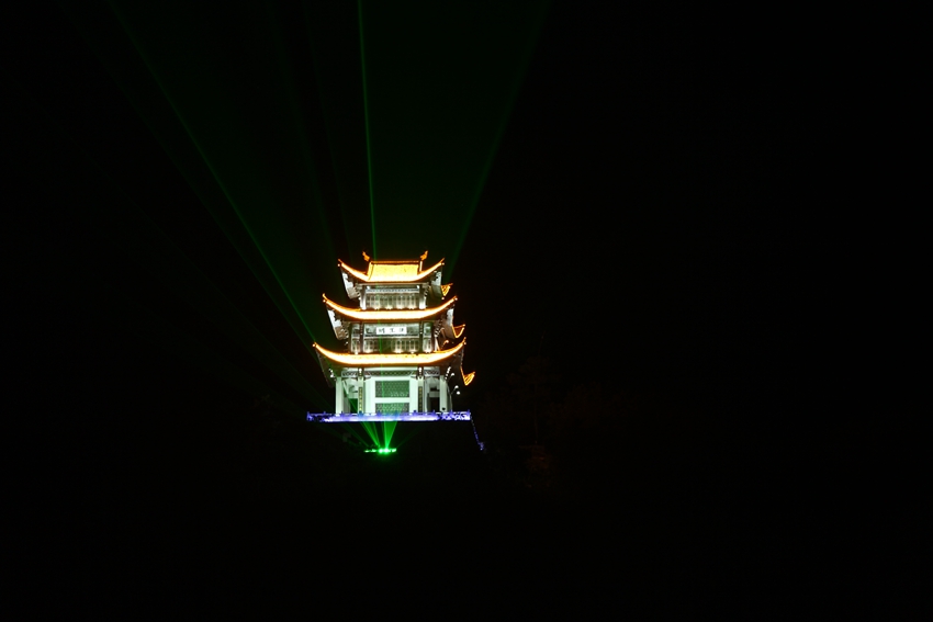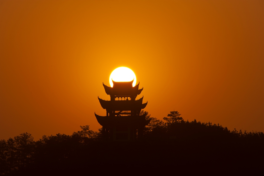 眼前這座山叫做尤溪山(又稱太陽山),山上大家可以看下有一座閣,叫孫王閣,這里有一個典故,相傳孫權(quán)之子(三子)南陽王孫和長眠于此。為深入挖掘其歷史文化內(nèi)涵,在山頂建閣一座,取名孫王閣。閣共三層,高24米,建筑面積740平方米。建三層主要警示三國梟雄紛爭、百姓疾苦的風(fēng)云歲月。沿山體修建登山游道,游人可登臨山閣,既可憑吊慨嘆,也可遠(yuǎn)眺兩岸青山、山城美景。